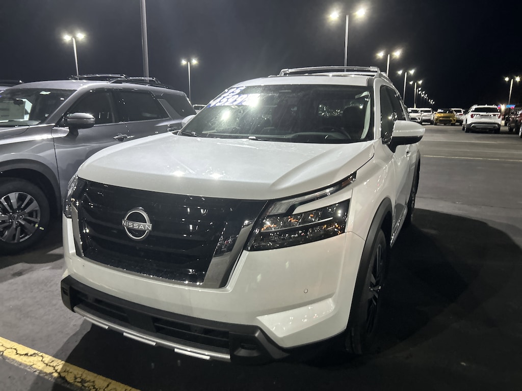 Scores 25 Highway MPG and 20 City MPG! This Nissan Pathfinder boasts a Regular Unleaded V-6 3.5 L/213 engine powering this Automatic transmission. EVEREST WHITE PEARL TRICOAT, CHESTNUT, SEMI-ANILINE LEATHER-APPOINTED SEATING SURFACES -inc: quilting, [M92] CARGO PACKAGE -inc: dividers and console net, Cargo Area Protector, Cargo Net, First Aid.