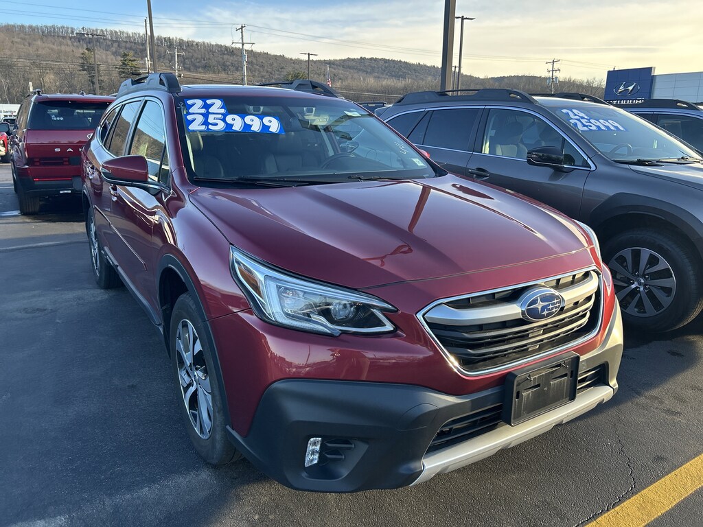 Delivers 33 Highway MPG and 26 City MPG! This Subaru Outback boasts a Regular Unleaded H-4 2.5 L/152 engine powering this Variable transmission. SLATE BLACK, PERFORATED LEATHER-TRIMMED UPHOLSTERY -inc: silver or ivory stitching, POWER MOONROOF & HSW & NAVIGATION SYSTEM -inc: DriverFocus (Driver Monitoring System), Power Moonroof, Heated Steering Wheel, Radio: Subaru STARLINK 11.6" Multimedia Nav System, AM/FM stereo, HD Radio, multi-touch gesture high resolution display screen, voice activated controls and navigation, Bluetooth audio streaming and hands-free phone connectivity w/SMS text messaging (refer to subaru.com for cell phone compatibility), Near Field Communication (NFC), iPod control capability, SiriusXM All Access radio (subscription required) required after), SiriusXM Traffic (subscription required) required after), SiriusXM Travel Link (subscription required) required after), smartphone integration: Android Auto, Apple CarPlay and STARLINK cloud applications (refer to subaru.com for app availability), USB and Over The Air (OTA) audio system update, USB/Map Over The Air (MOTA) TomTom navigation system update s), 576 watt harman/kardon surround soun, CRIMSON RED PEARL.